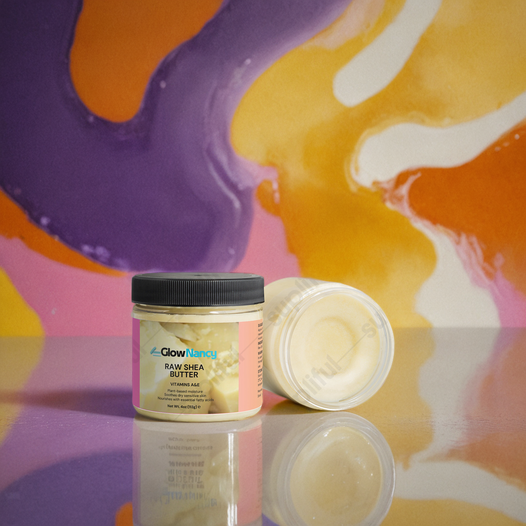 Experience the luxurious hydration of GlowNancy Raw Shea Butter, crafted from 100% pure, unrefined shea butter. Rich in vitamins A, E, and essential fatty acids, this natural moisturizer deeply nourishes dry skin, softens hair, and soothes irritation. Perfect for all skin types, it melts effortlessly into your skin, leaving it smooth, radiant, and glowing.